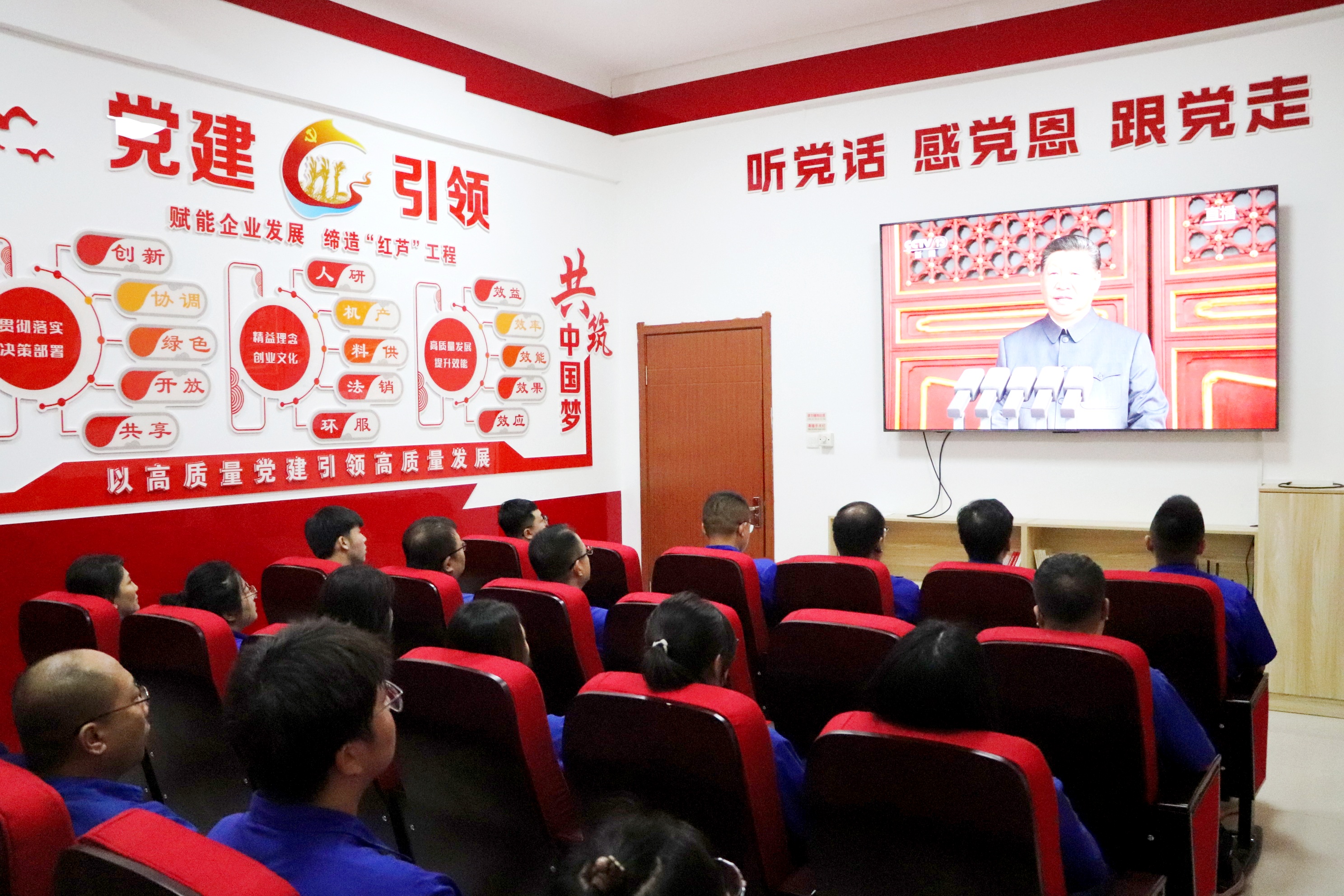 天安門廣場上受閱部隊氣勢如虹,廠區(qū)電子屏幕前職工神情專注,盤錦合力以一場精心組織的觀看活動,...